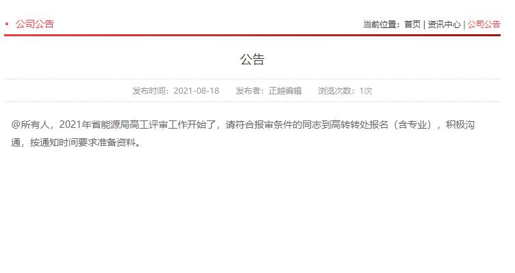 @所有人,2021年能源局初中級評職稱工作已開始,符合條件的人員,請積極報名和準備資料?!靖健俊蛾P(guān)于做好2021年度工程系列初中級職稱評審工作的通知》